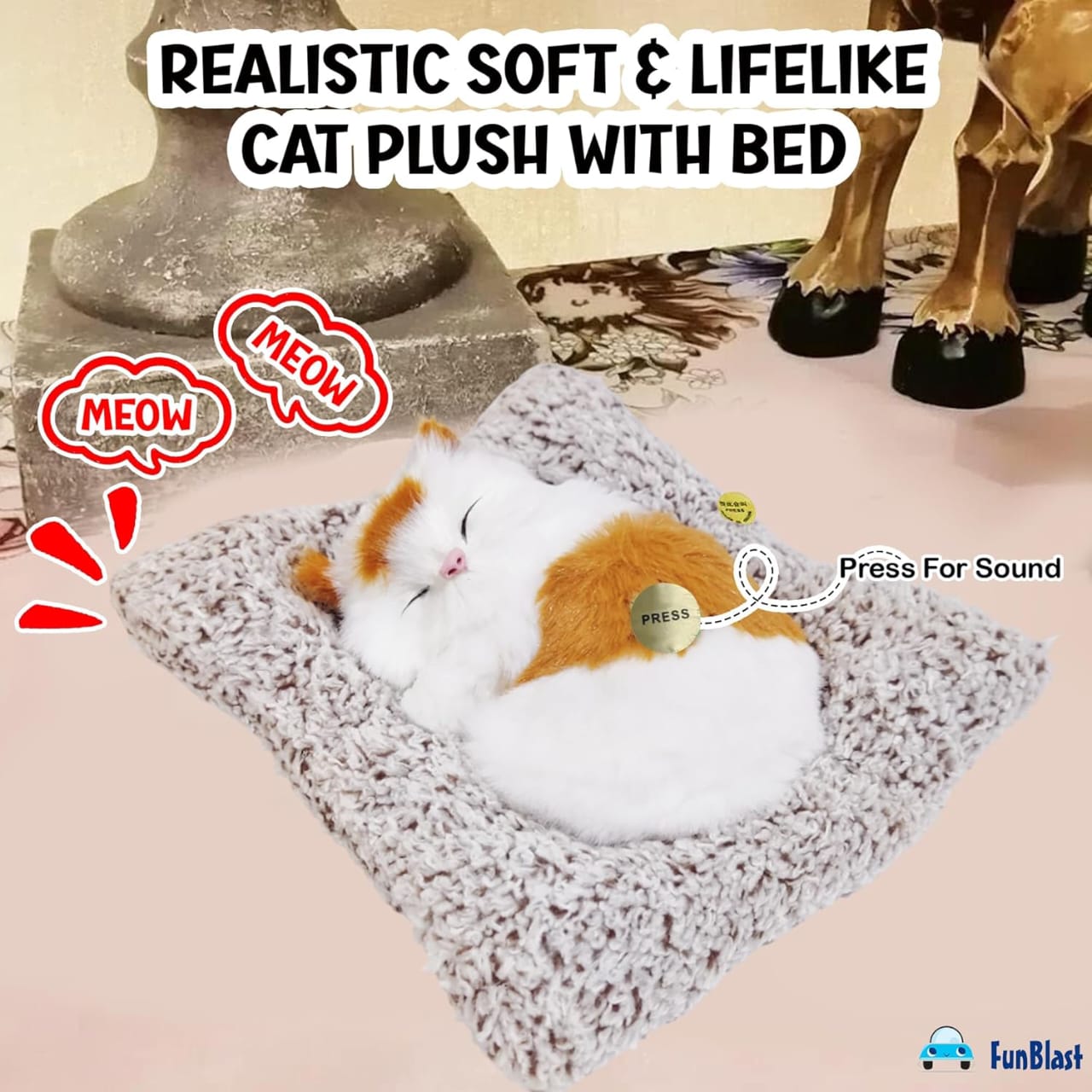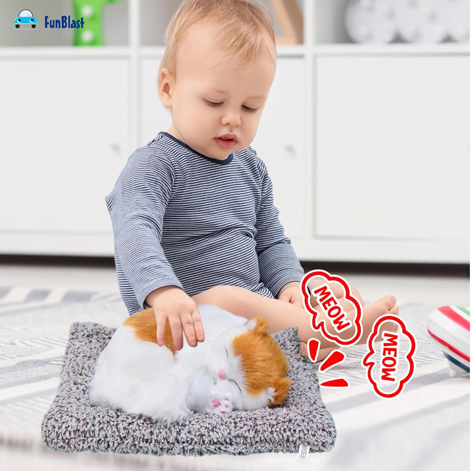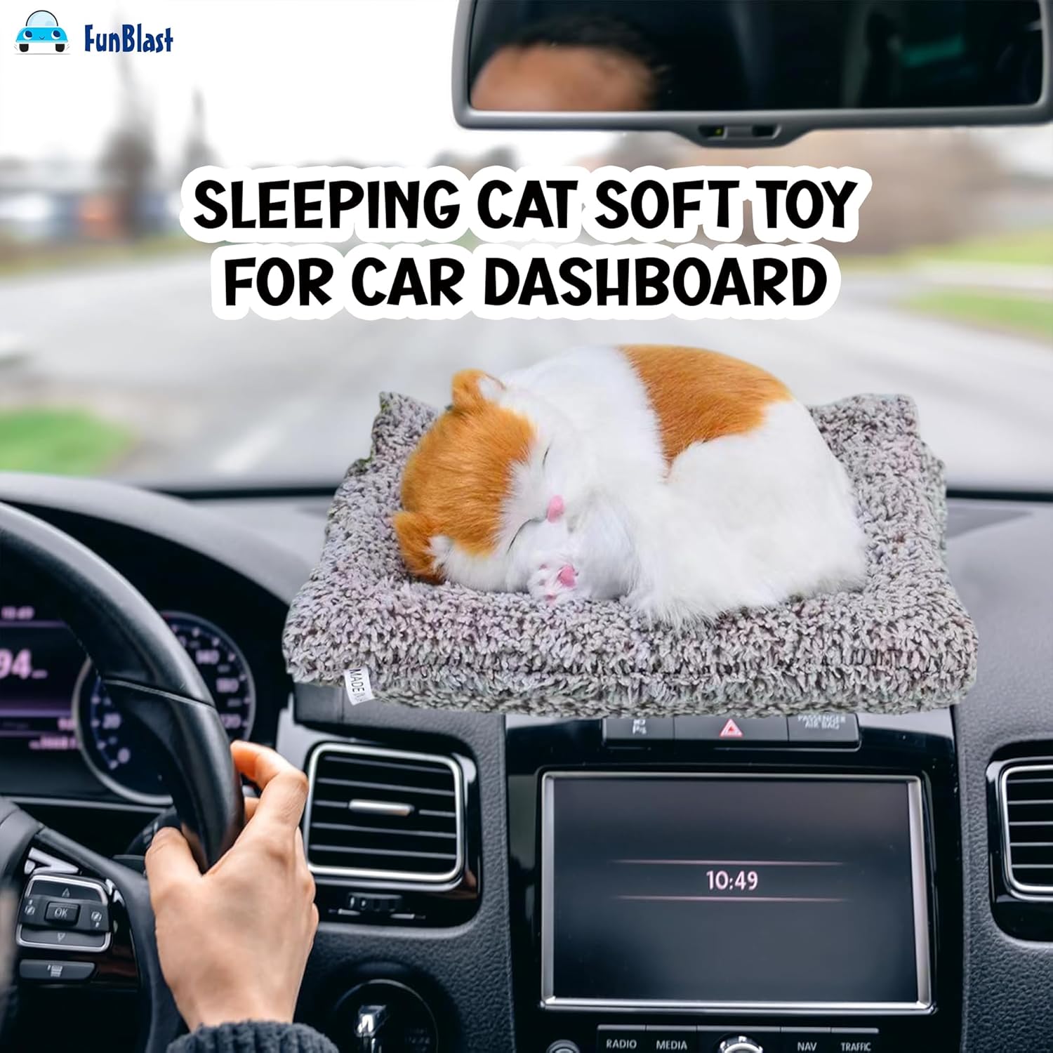 sleeping cat (random colour)   Fun Blast Cute Sleeping Cat Plush Toy with Meow Sound, Gift for Kids, Toy Accessories for Car Dashboard