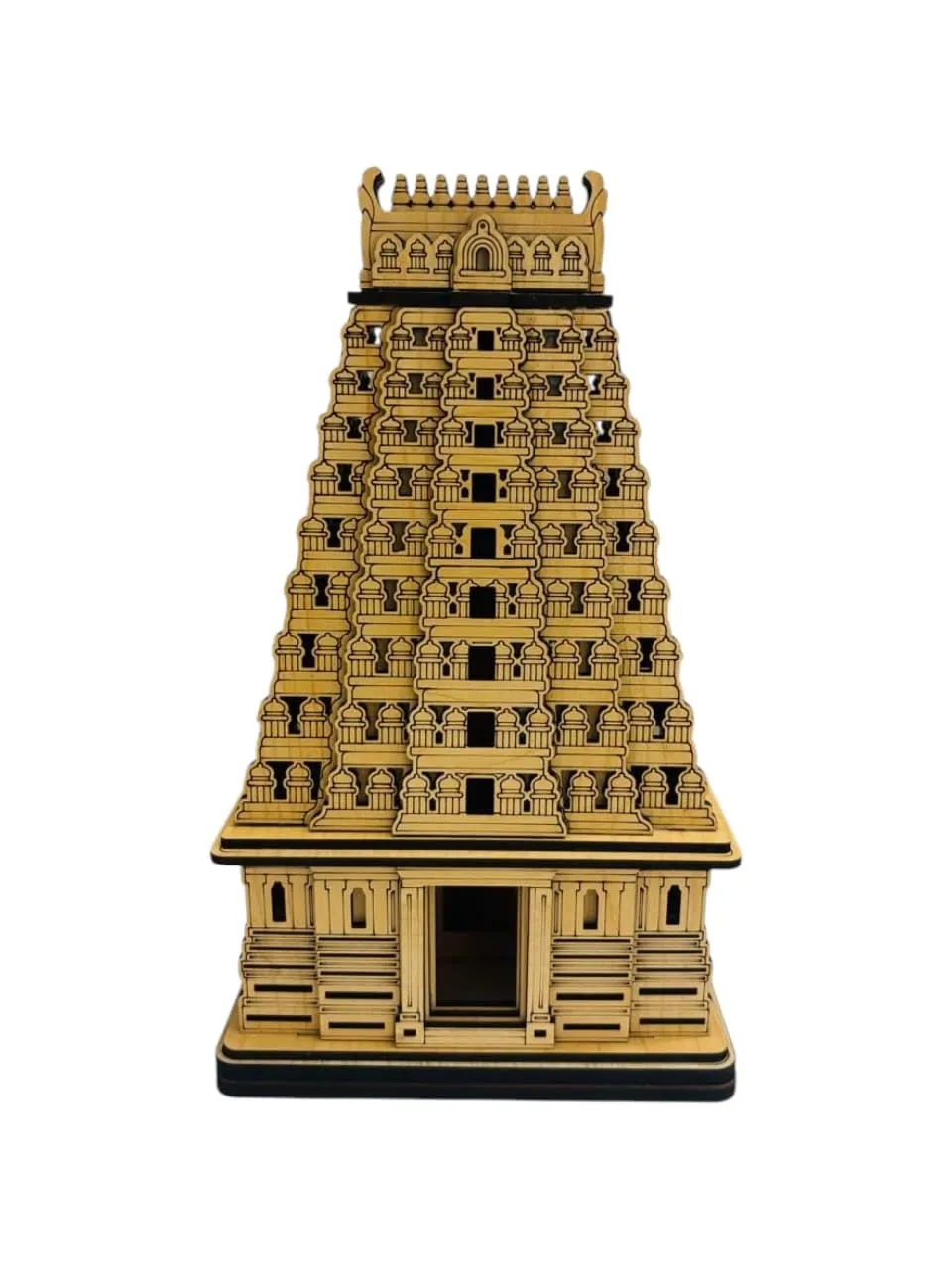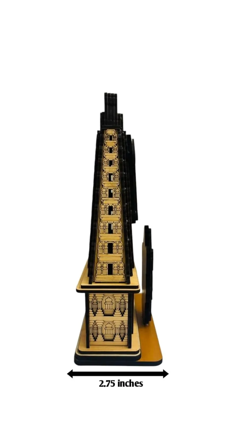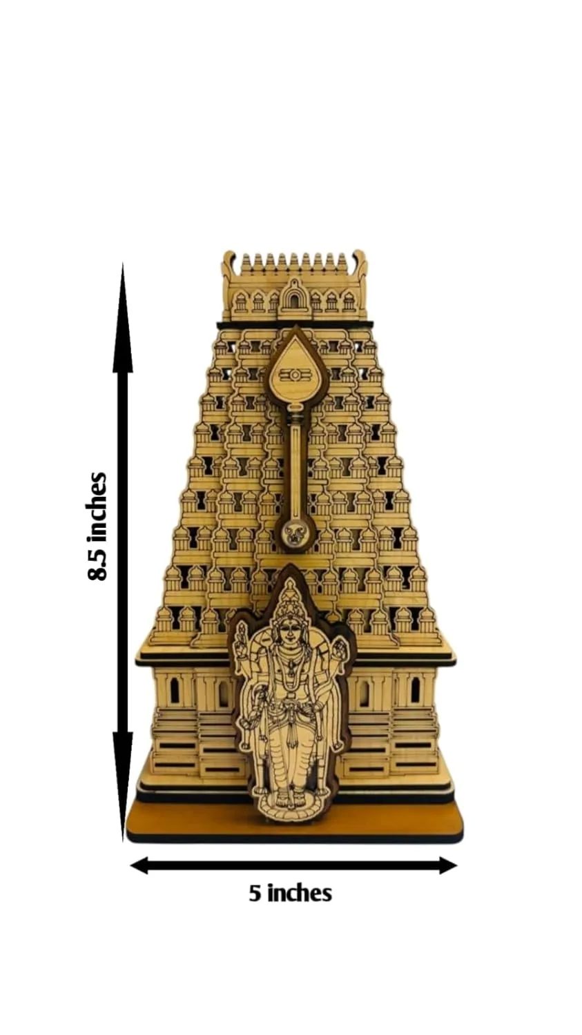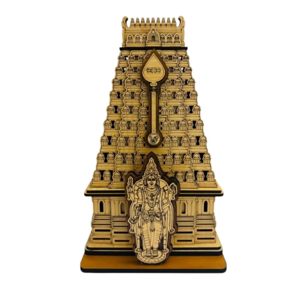 Crafted from high-quality wood with precise laser-cut details, showcasing the temple’s iconic gopuram structure and deity figure