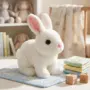 INTERESTING TOY FOR KIDS: Still buy some boring stuffed animals or dolls for your little one? Why not try this animated hopping bunny? Adorable rabbit can swing long ears back and forth, twitch nose and go hopping. It will mumble when you touch its nose. Perfect gift for a little one that loves animals.